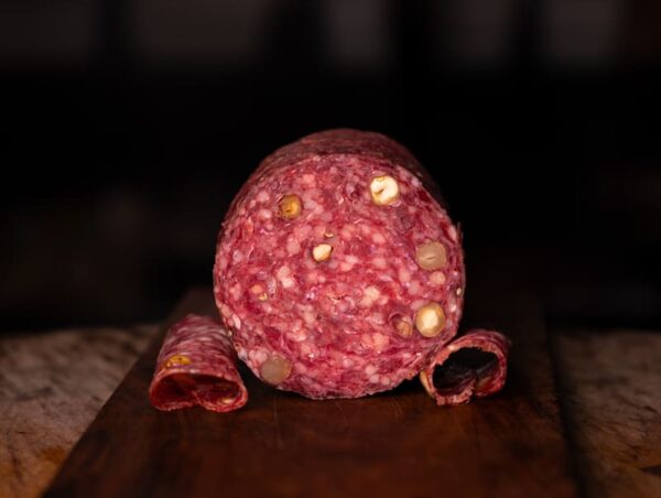 Sélectionnée par Raf, la rosette aux noisettes halal est généreuse et fondante en bouche. Les noisettes apportent une note subtile qui enrichit la saveur de la viande. Idéale pour les apéritifs raffinés ou les plateaux de charcuterie.